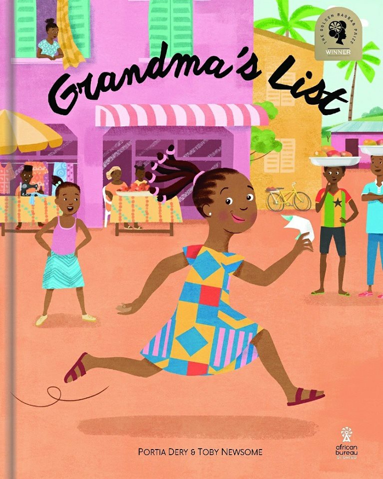 Winner of the Golden Baobab prize, Grandma’s List is a hardcover book for children aged 5+.
